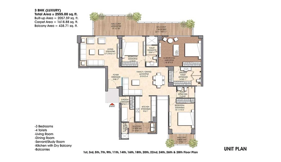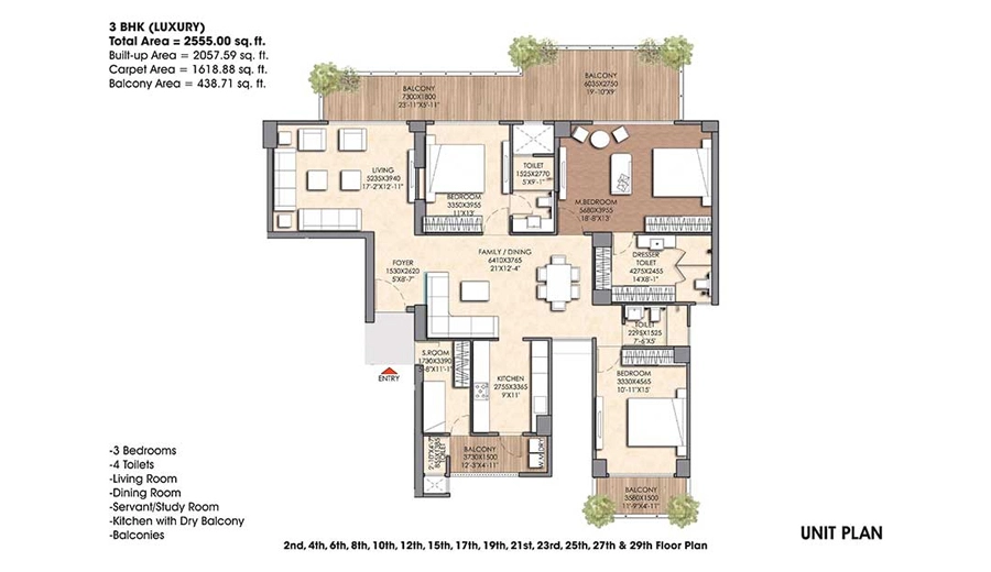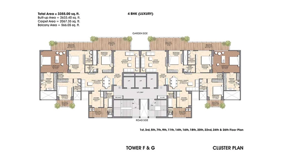 • Spacious 3/4BHK residencies & Duplex Penthouses